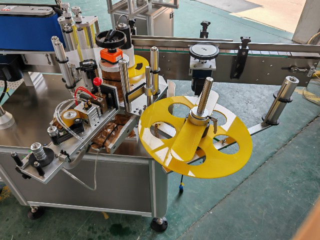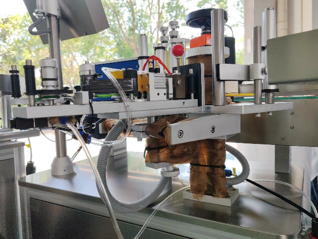 2025.6.27危地馬拉立式圓瓶不干膠貼標機帶轉盤