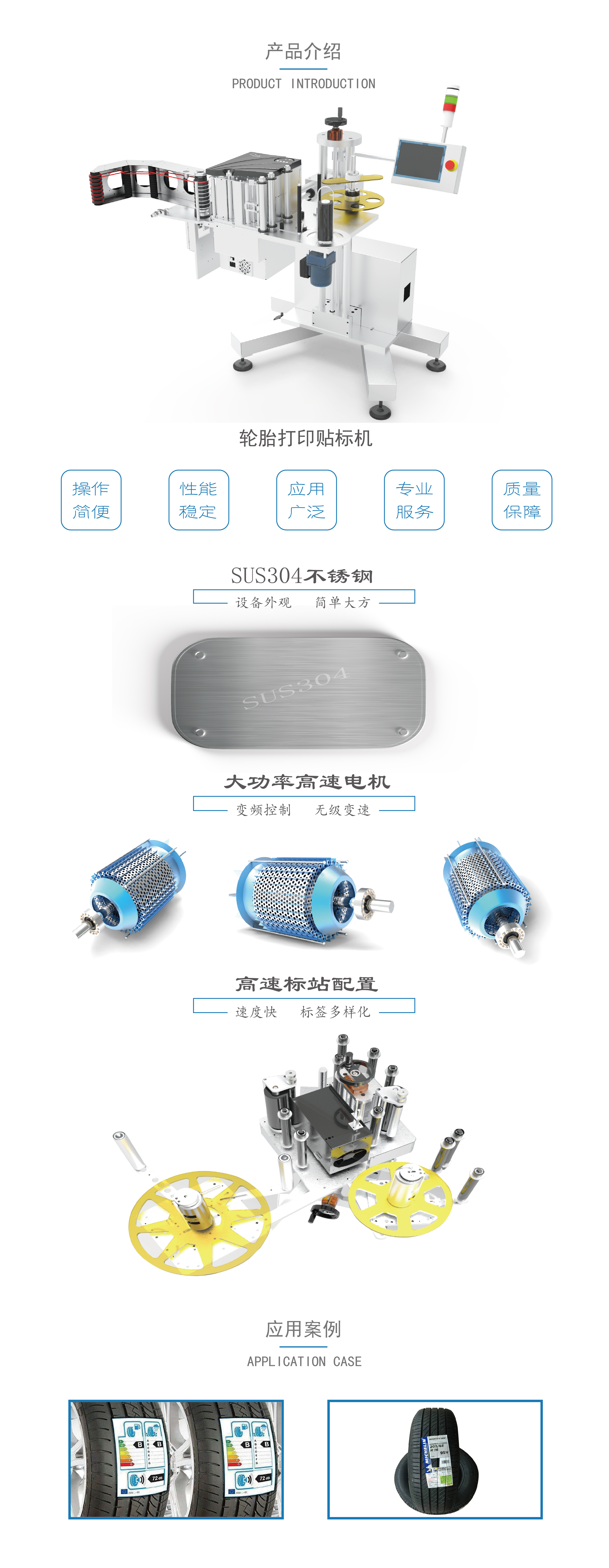 本產(chǎn)品適用于輪胎類包裝線貼標(biāo)。實(shí)時(shí)打印標(biāo)簽信息杜絕人為差錯(cuò);為各行業(yè)的物流監(jiān)控應(yīng)用及產(chǎn)品質(zhì)量追溯二維碼標(biāo)簽打印提供了有效的實(shí)施工具;有數(shù)據(jù)直連型、打印模板型、打印軟件系統(tǒng)型多種模式可選,靈活應(yīng)用在生產(chǎn)包裝線上;同時(shí)支持以太網(wǎng)、串口和并口等標(biāo)準(zhǔn)通訊接口,并可以根據(jù)客戶實(shí)際需求以及現(xiàn)場ERP系統(tǒng)接口情況提供定制化打印軟件系統(tǒng);打印引擎可選美國、德國、日本等多款高端品牌;靈活的安裝方式可以根據(jù)客戶的實(shí)際空間設(shè)計(jì),提高貼標(biāo)效率,減少人工成本